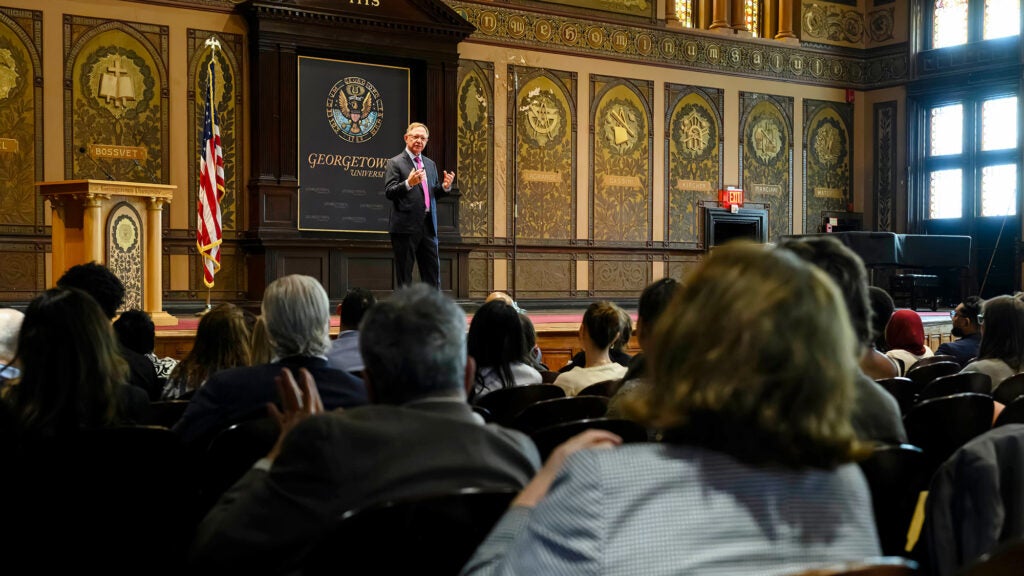 Health care leader, author and philanthropist Quint Studer delivered a lecture on September 4 in Gaston Hall, challenging attendees to cultivate what he described as a “get”…